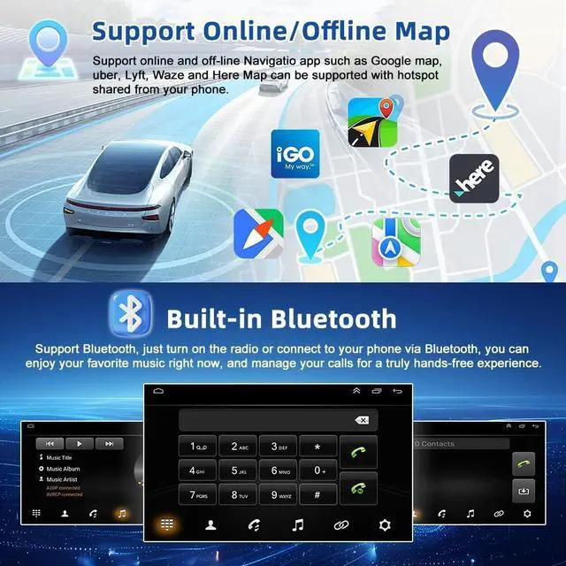 Built-in Offline Map of North America. Online map also be supported, after connected to WiFi, you can use GPS Navigation at anywhere. This item allow install or delete android apps from Application Store, as the same as smart phone ^^ Hands Free & Backup CameraKeep all orginal wheel control function, Easy to switch songs, channels and adjust volume etc. without taking your hands off the steering wheel, you can intently focus on the driving and choose your favorite music safely on the move, provide you safer and more enjoyable journey.