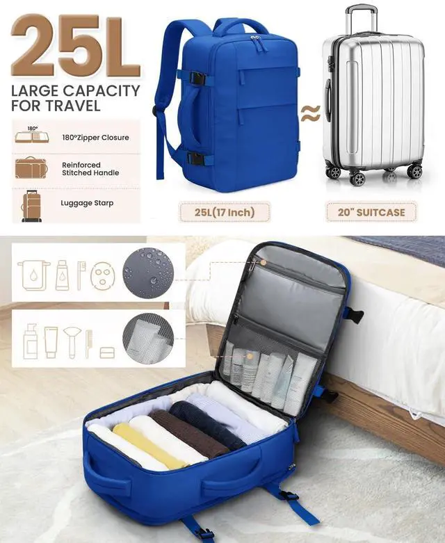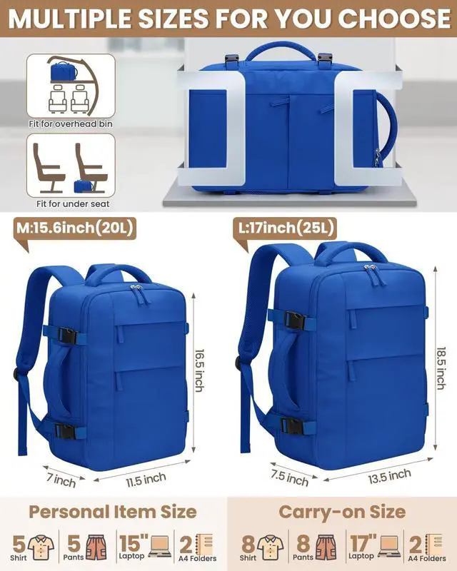 Backpacks: Sized at 18.5 13.5 7.5 inches & 25L a capacity for Large. Featuring a 180-degree bidirectional zipper closure, these backpacks enable quick and easy security checks. Ideal for travel, they fit both overhead and under-seat compartments. Compliant with most airline regulations Carry on regulations. Pritent travel backpacks offer the perfect blend of functionality and style, making them a must-have for any traveler. ^^ 25L Capacity & 11