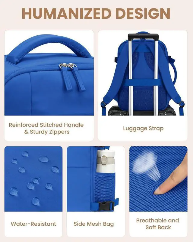 Peak Convenience: Our travel backpack features a game - changing luggage sleeve. This sleeve effortlessly slides over suitcase handles, freeing your hands and eliminating the hassle of juggling multiple bags. Complementing the luggage sleeve are sturdy side handles, with an ergonomic design providing a comfortable grip and versatile carrying options. this backpack makes every journey smoother and more enjoyable.