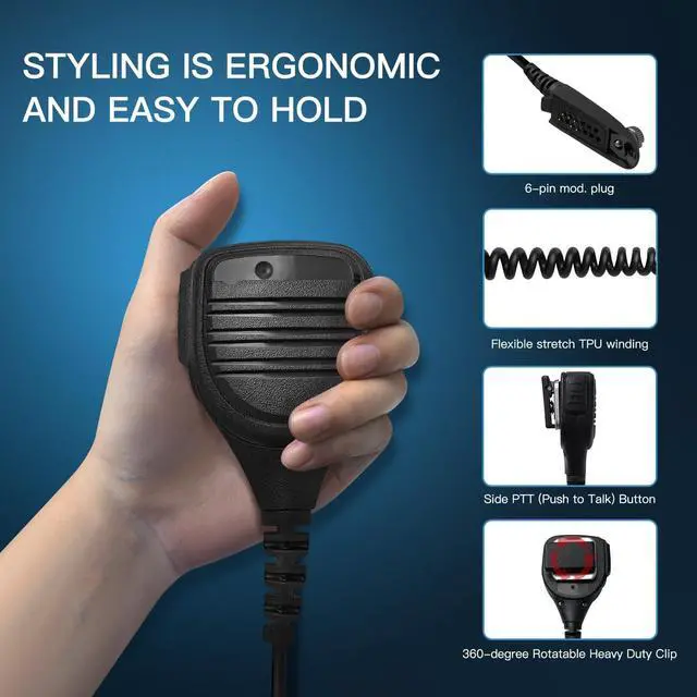 Simple Plug-and-Play: Simply plug the speaker mic into your radio microphone jack and press the push-to-talk button on the mic to talk. The reinforced cable ensures long-lasting durability and stable signal transmission