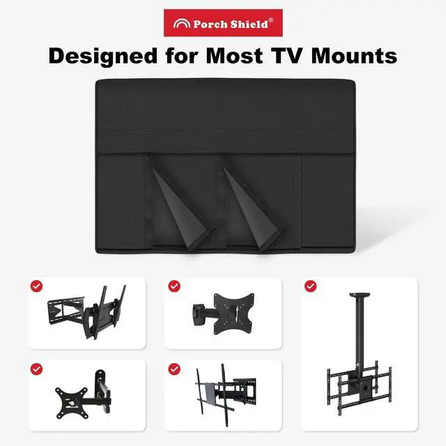 ^^ Installation - Velcro at the bottom for easily installing and removing. With the velcro firmly fastened, Outdoor TV cover will provide your patio TV with full protection and let outside television looks alomost like new. ^^ Pocket - Side pocket but not back pocket. Easy to place the remote inside its pocket of outdoor TV cover when you turn off the TV.