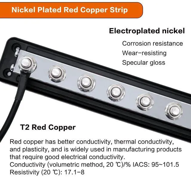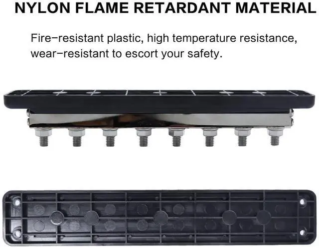 Feature: 0.748 inch/19mm thick nickel-plated copper distribution block, with high conductivity suitable for your high-power applications; The base and cover made of flame-retardant nylon glass fiber reinforced material ensure mechanical strength and durability ^^