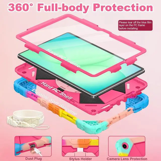CompatibilityDesigned for samsung galaxy tab a11 plus / a9 plus 11 inch(SM-X230/X235/X236B/SM-X210/X216/X218). Please check your tablet to avoid the incorrect model number. ^^ 360 Rotating Stand & Folding HandleGalaxy tab a11+ / a9+ plus case with a multifunction handle that also rotating 360 and folds 180 to give you multiple angles for easy viewing, typing or drawing. ^^ Pencil Holder & Adjustable Shoulder StrapSamsung a11 plus tablet case with pencil holder. Also offers adjustable shoulder strap, allow you use or carry much easier, perfect for a variety of people and occasions. ^^ Mil-Grade Drop ProtectionThe samsung tab a11+ plus case is made of shockproof PC and soft silicone, upgrad grade thickened corners & shock-proof design, with built-in screen protector to prevent daily scratches caused by rough surfaces or sharp objects and raised edges to protect camera, super shock absorption provides full body protection! ^^ Precise Cutouts Galaxy a11 plus 11 Inch kids tablet case perfect fit all controls to easily access all tablet functions without taking out of the case.