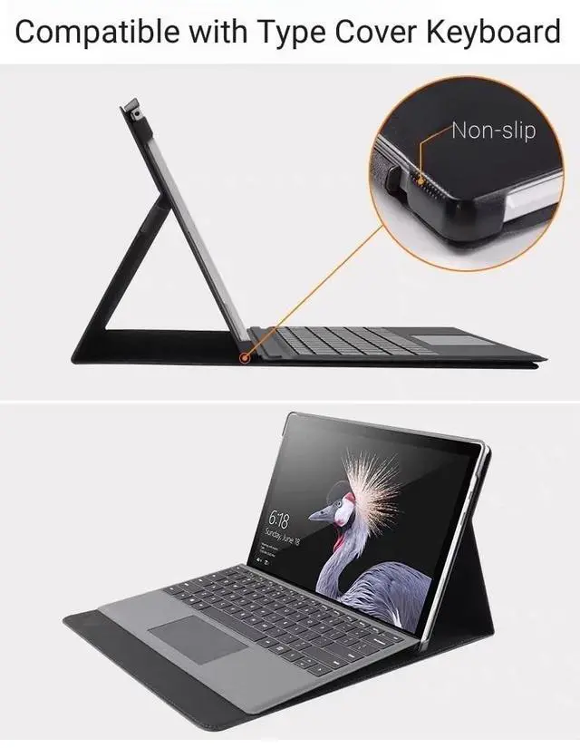 Edition (model: 2110), not suitable for any other tablet models ^^ [Full Protection] Made of durable PU leather and TPU, front and back covered by soft PU, the inside durable TPU can perfectly fit for surface pro 12 and protect its back cover and four corners, maximum protect it from drop and scratch, the surface is soft and silky to provide a comfortable touch to the skin ^^ [Built-in Pen Sleeve] The Cover built-in Pen holder, conveniently place and remove your pen, prevent losing or breaking your Pen when you're walking or outdoor(Please note: Pen is Not included) ^^ [Different Viewing Angles] Non-slip stand design with standing provide different angles for comfortable viewing or typing, you can have an excellent experience when you are relaxing or working ^^ [Magnetic Close/Open] Flip cover can be unfolded as a cushion for the keyboard, protect the keyboard from scratches. While both Microsoft Surface Pro 12 tablet itself and the keyboard will be secured with a magnetic closure when close the flip cover.