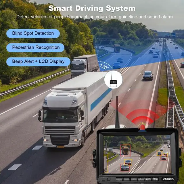 The reversing monitor connects to the cigarette lighter, while the backup camera can be wired to the tail light, reversing light, or running light for power. For RVs with pre-installed Furrion systems, the package includes a mounting bracket to mount the camera and pigtail wire for easy plug-in. The all-metal RV backup camera is IP69K waterproof level, shockproof, and built to perform in extreme weather conditions. ^^ Built-in BSD Function & AI Human Detection AlertOur advanced 4-camera rv backup system features the latest Blind Spot Detection (BSD) technology which can be turned on or off based on your preference.