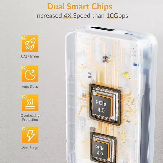 Support M-Key NVMe 2280 SSD This M. 2 NVMe 40Gbps Enclosure is only compatible with M-Key NVMe 2280 SSD. Not compatible with M. 2 SATA/NGFF SSD and B+M Key NVMe SSD. ^^ USB 4.0 40Gbps Speed This M. 2 Enclosure supports 40Gbps speed for M. 2 NVMe. Support UASP, which can reduce data delay and waiting time, and increase the transmission speed of the SSD by 20%. Support Trim, which can enhance the efficiency of file recycling and solve the problem of SSD speed reduction. Therefore, you can directly open HD design files, 4K movies, etc.