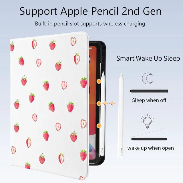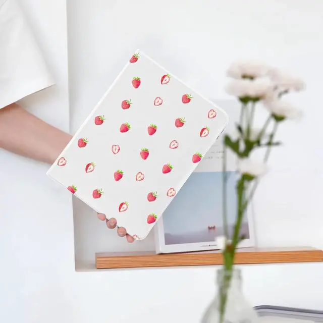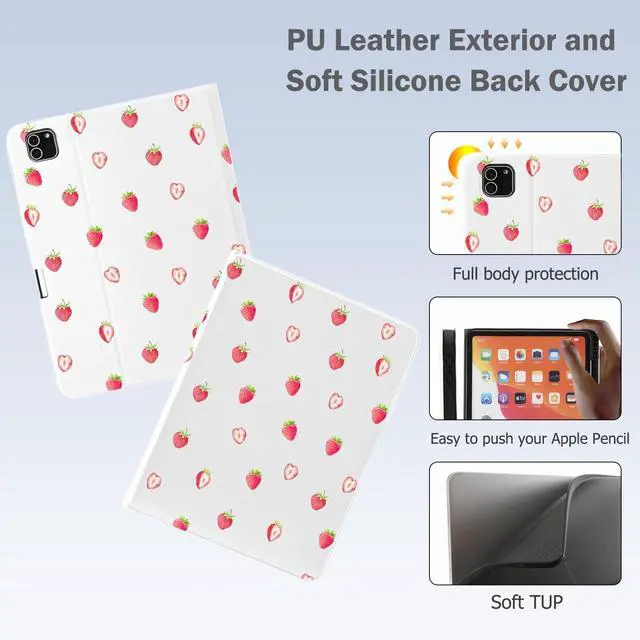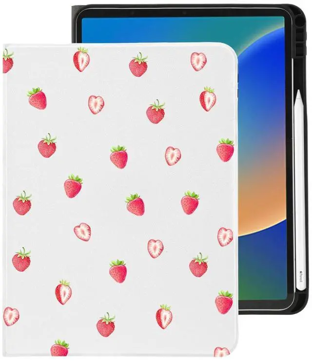 BlHMCASE Cute Strawberry for iPad (A16) Case 11th/10th Generation 11''/10.9'' 2025/2022 with Pencil Holder, Auto Sleep/Wake and Multiple Viewing Angles, White Leather Soft TPU Back Cover