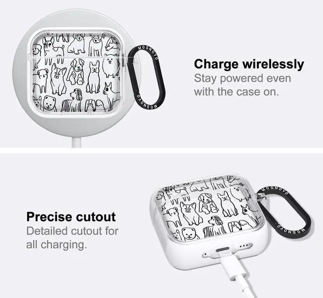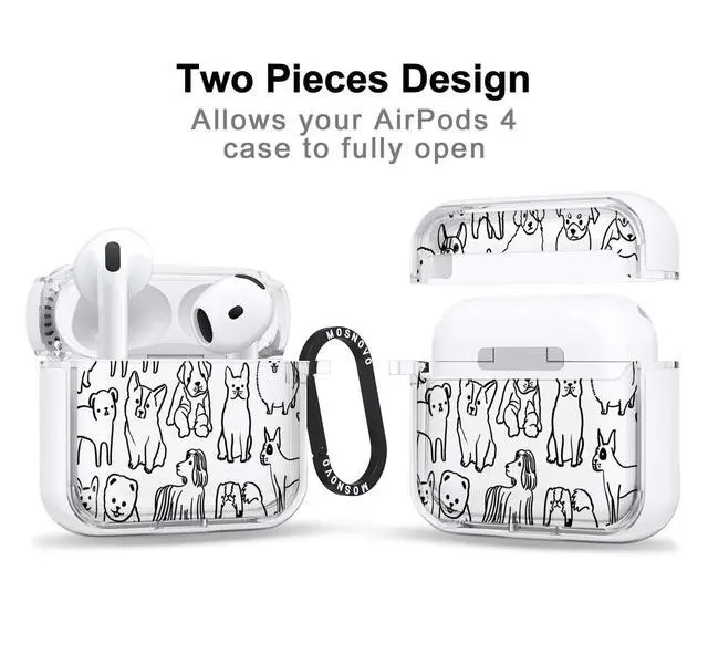 MOSNOVO Case for Airpods 4, Protective Clear Case with Shockproof Dual Layer Hard Luxe Metal Ring Designed for Airpods 4 Generation - Doodle Dog