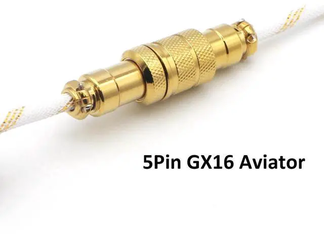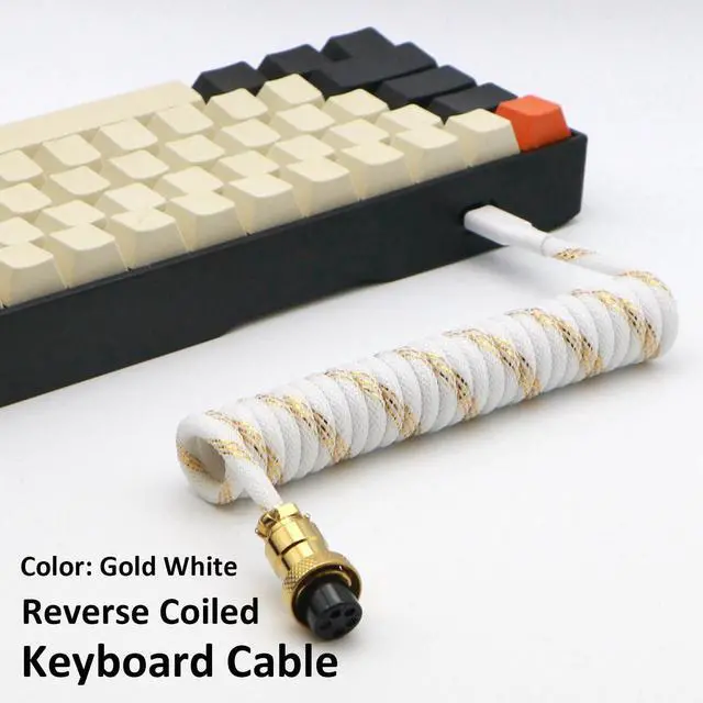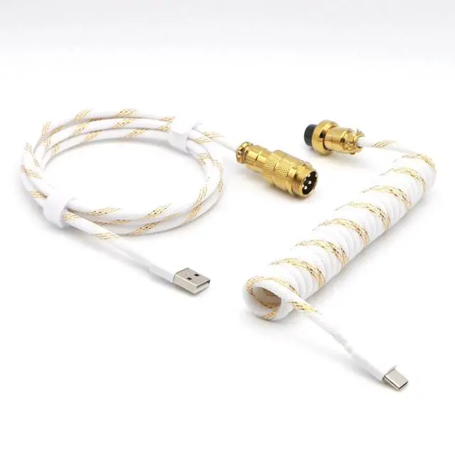 KCSJXF Reverse Coiled Type-C Cable for Gaming Keyboard, Double-Sleeved Mechanical Keyboard Cable with Gold Metal GX16 Aviator, 1.5M USB-C to USB-A (Gold White)