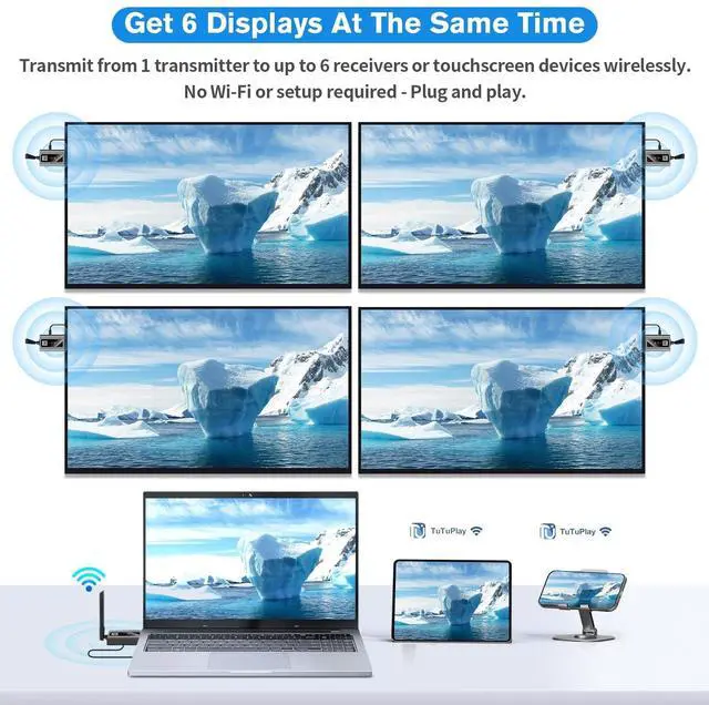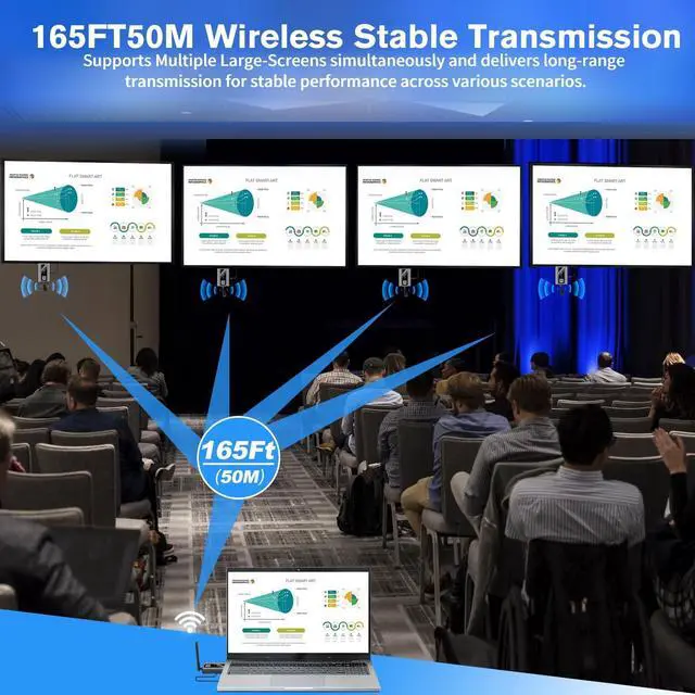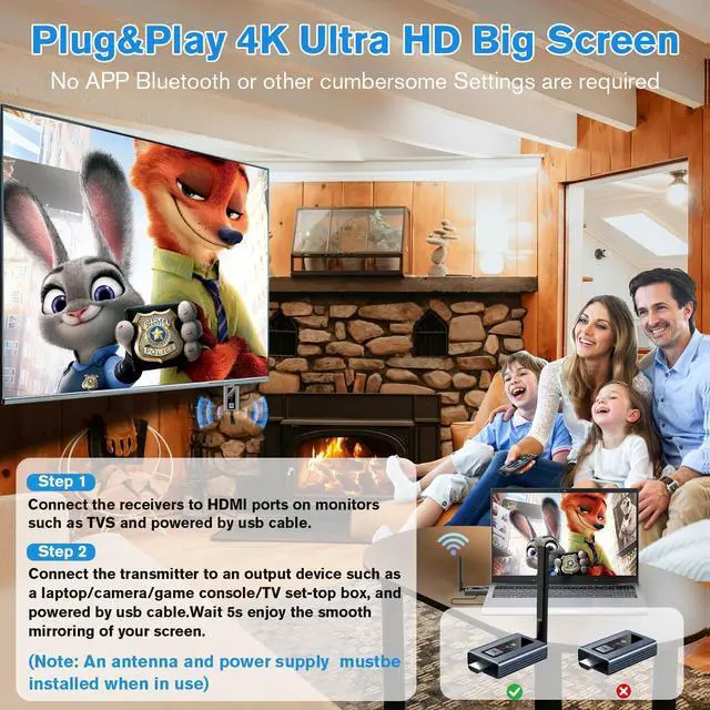 Wireless HDMI Transmitter and Receiver is designed with newly upgraded LED display, connection status, signal status, output status, power status can be seen at a glance, all-round upgraded products, all-round to meet the needs of our work and life more leisurely and easy. Wireless HDMI Extender supports screen copy and screen expansion, allowing you to project the content from your laptop, camera and cable set-top box to HDTV, projector and monitor, the duplication mode synchronizes the screen in real time, and the expansion mode displays a different screen for a wider range of operations.