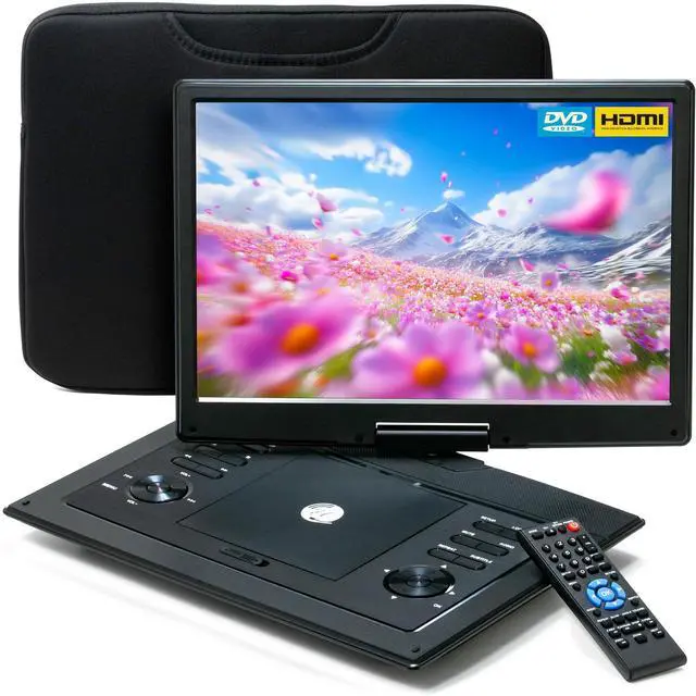 ^^ Includes Handy Carrying Case for Full PortabilityThis portable DVD player comes with a durable, compact carrying bag to safely store and transport the player, cables, and remotekeeping everything organized on the go. ^^ Rotating Screen & AV Output for Flexible ViewingAdjust the screen to your preferred angle and connect via AV output to older TVs or car monitors. Great for road trips, flights, camping, and personal entertainment anywhere. ^^ Perfect for keeping kids entertained on long trips, this durable portable DVD player with parental-friendly features like auto-resume and a simple remote makes family travel peaceful and easy.