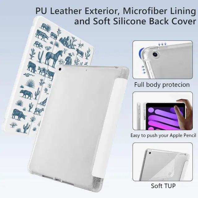 Please Note: It doesn't compatible with any other tablet models, and the pen holder of this model is located on the right side of the iPad ^^ Well made with PU exterior, microfiber lining and soft silicone back cover, offers full body protection from drops and scratches ^^ Built-in Apple Pencil holder, grab your Apple Pencil effortlessly whenever you want, keep the apple pencil as safe as your iPad all the time ^^ Cover has flip capability to transform the case into a viewing stand and typing stand. Available in a variety of bright colors and unique pattern ^^ Built-in magnetic strip provides auto sleep / wake function. Precise cutout and design allow easy access to all ports, sensors, speakers, cameras