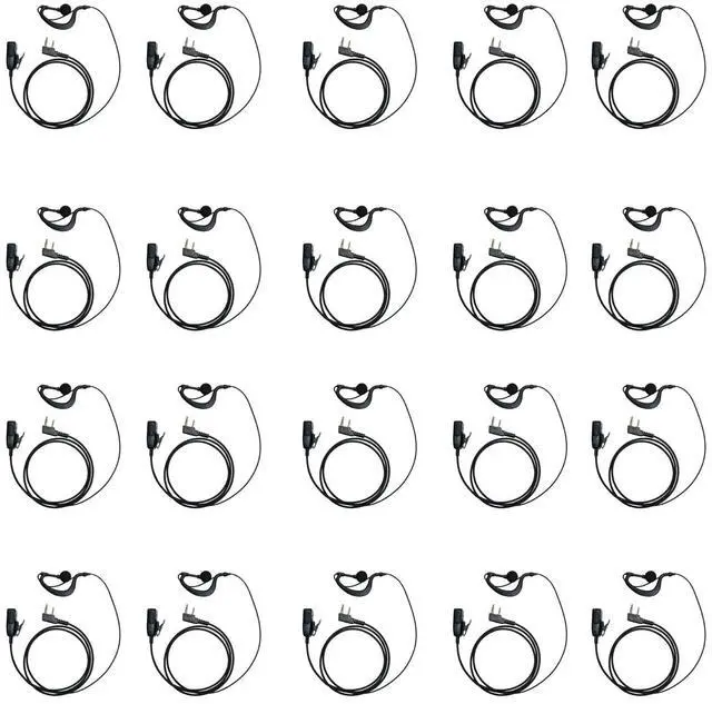 * 20-Pack Universal 2-Pin D-Shape Earpiece Headset with Mic & PTT, Compatible with Kenwood Baofeng BF-888S UV-5R, Bulk for Two-Way Radio Security TeamCompatible with