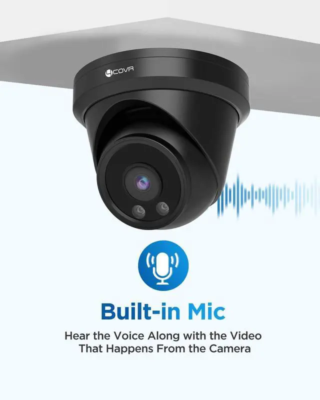 POE PLUG AND PLAY: Powered over PoE, only one cable needed for audio, video, and power. Easy setup with 4COVR PoE NVR, switch, or injector (not included) ^^ INTELLIGENT AI HUMAN & VEHICLE DETECTION: It supports the classification and accurate detection of human and vehicle. This function recommend to work with 4COVR NVR.
