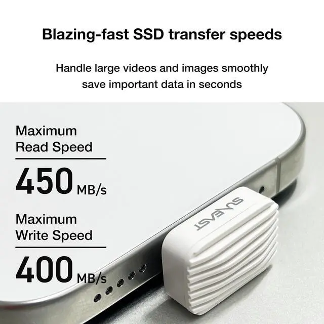 Ultra-Light & Pocket-Sized Design At only 2.8 grams and measuring approx 10.6 20 13.5 mm, this SSD is nearly weightless in your bag. Perfect for on-the-go storage without bulk. ^^ High Speed USB-C 3.2 Gen1 Performance Fast read speeds up to 450 MB/s and write speeds up to 400 MB/s let you transfer large filesphotos, 4K video, softwarequickly and smoothly. ^^ Wide Compatibility + exFAT Format Pre-formatted in exFAT, making the drive out-of-the-box compatible with Windows, macOS, Linux, Android (14+), and iOS/iPadOS devices with USB-C ports. Great tool for cross-platform data sharing.