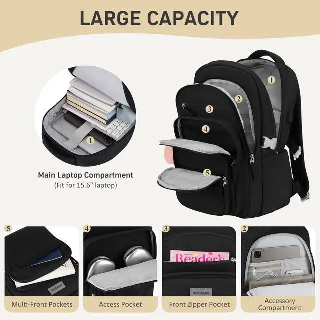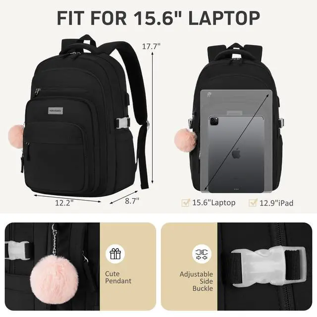 DescriptionKROSIAS is the brand for the casual and fashionable backpack for kids, girls, womenYour Best Choice for the SCHOOL GRADUATION GIFTS and BACK TO SCHOOL supplies. It can be served as a high school backpack for girls women, girls backpacks for middle school, child backpack, college bookbags. Spacious Compartments could make your school supplies tidy and organized ( like a laptop, book, folder, pencil case, pocketbook, keyboard, mouse and phone charger cable, etc)Super CapacityThe main compartment with 1 padded laptop sleeve and 1 padded tablet slot can fit 15.6 inch laptop and 12.9 inch tablet, the multi-pockets (tool pockets )