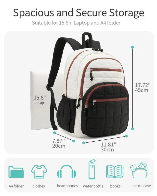 Fashion Forward Quality: This versatile backpack are made with soft taslon fabric, nylon lining, zippers & straps in colors & designs, this adult backpack ensures longevity and resistance to daily wear and tear. Our quilted bookbags are water-resistant and easy to clean, making it an ideal companion for your school or urban commute ^^ Easy to