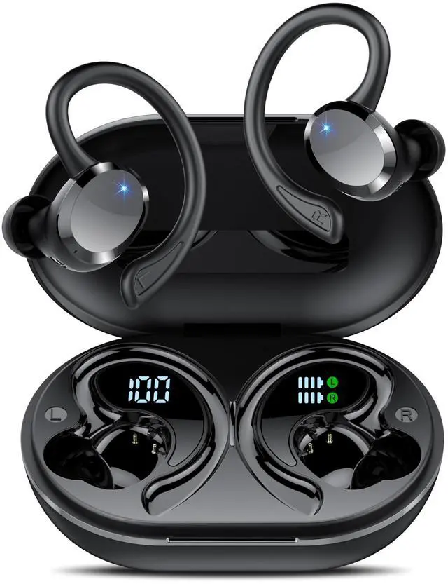 ^^ COMFORTABLE TO WEAR WITH IPX7 RATED WATERPROOF PROTECTIONExperience lasting comfort with flexible TPU ear hooks and 3 sizes of soft sport earbuds (S/M/L) for a secure, personalized fit that stays put. IPX7 rated waterproof protection makes the headphones sweatproof and water resistant, making them suitable for a wide range of outdoor activities such as running, cycling, and fitness. ^^ SMART TOUCH CONTROL AND UNIVERSAL COMPATIBILITY Command your world effortlessly with a tap. These wireless earbuds feature intuitive touch controls right on the surfaceplay/pause music, adjust volume, manage calls, or summon your voice assistant instantly.