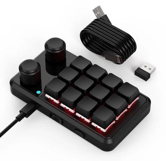 Mini Programmable Keyboard, One Handed Gaming Custom Keyboard Multifunction 12 Keys 2 Knobs Suitable for Office Gaming Lab, Compatible with Mac OS, Windows