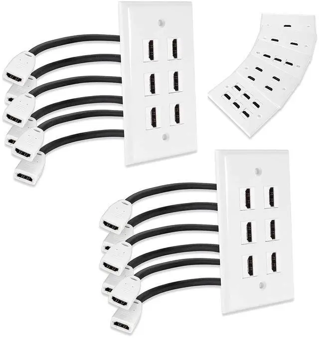Ports: 6 pieces of 6-inch flexible female to female HDMI cable couplers are included. They are plug and play cables supporting 4K, 3D, ARC and backwards is compatible. Enjoy high quality audio/video without tangled cables or visible cables in the wall ^^ SNUG IN DESIGN, NO SCREW IS NEEDED ON THE BACK: Instead of using screws to fix cables to the bracket, you can just lock the cable into the slot for easy installation. Simple as that ^^