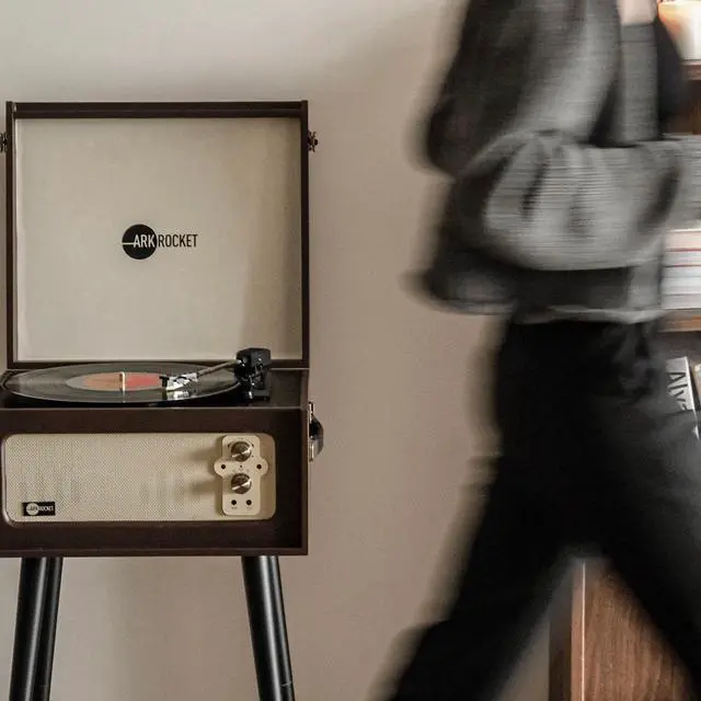 Seamlessly switch between vinyl and digital music. ^^ Built-In Speakers for Rich Audio No need for external speakersArkrocket Discovery II has powerful built-in speakers that deliver clear, rich sound. Whether you're playing vinyl records or streaming via Bluetooth, you'll enjoy a full and dynamic audio experience. ^^ Removable Legs for Versatile Setup Customize the look to fit your space. The detachable wooden legs allow you to use this turntable as a stylish floor-standing console or a compact tabletop vinyl record player, making it perfect for any decor.
