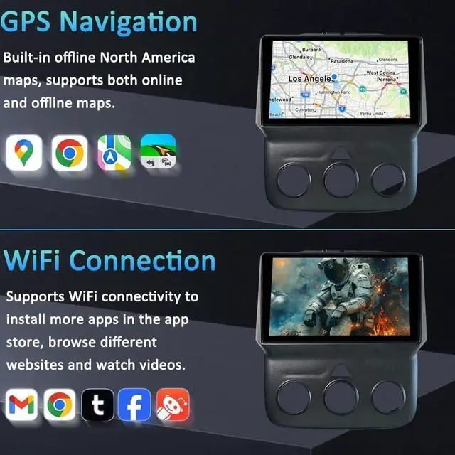 (Note: Please verify your truck's year and AC type before purchase). ^^ [Wireless Apple Carplay & Android Auto]Dodge Ram 1500 radio supports Apple Carplay and Android Auto. Simply connect your phone to your Android car radio via Wifi and Bluetooth, and you'll be able to access your phone's apps directly from your car stereo. You can focus on driving while wirelessly accessing features like map navigation, answering calls, playing music and more. ^^ Crystal Clear Backup Camera & Enhanced Safety Transform your 2013 RAM 1500 radio with backup camera or 2018 RAM 3500 stereo with backup camera wish into reality. Park with confidence and eliminate blind spots, making it the ideal 2015 RAM 2500 stereo with backup camera upgrade for your truck. ^^ Powerful Android 15 Performance & Superior Sound Powered by the latest Android 13 OS with a fast Octa-Core processor, 2GB RAM, and 32GB ROM. Runs navigation and apps smoothly. Customize your audio with a built-in multi-band EQ and enjoy powerful, clear sound through your truck's speakersa significant improvement over any 2017 RAM 1500 android radio or stock system. ^^ Feature-Packed Modern Upgrade with Reliable Support More than just a 2015 RAM 1500 radio upgrade, it's a complete infotainment center.