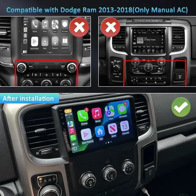 Perfect Fit & Direct Replacement for Your RAM Truck This 9-inch touch screen car stereo is designed specifically as a direct replacement for the factory radio in Dodge RAM 1500, RAM 2500, and RAM 3500 models from 2013 to 2018 (with Manual AC controls). Ensure a seamless, plug-and-play upgrade for your 2013-2018 RAM 1500 radio, 2014 RAM 1500 stereo, or 2016 RAM 2500 radio.