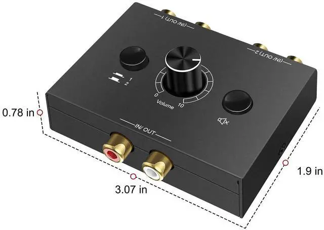 Super small size: 78 * 50 * 20 mm / 3 * 2 * 0.79 inWeight: 117 g / 0.25 lbPackage contains: 1* L / R Stereo Audio Switch Switcher1* L / R stereo cable1* User manual