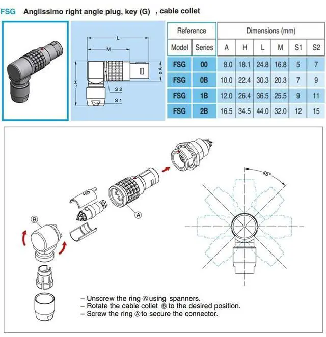 Right Angle plug: FSG. 0B (2 3 4 5 6 7 9 pin available).
