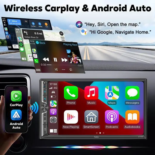 Wireless CarPlay and Android AutoEnjoy a simplified iOS or Android interface on your cars display, making navigation, calls, and music playback a breeze. With advanced voice control, you can stay hands-free and focused on the road ^^ QLED ScreenExperience a vibrant 7-inch LCD HD screen (1024x600) that supports 1920 x1080P video playback ^^ 4.2 -Channel Audio OutputThis car radio supports 4 Channels RCA Audio Out for Connecting to Aftermarket Amplifier and 2 Separate Subwoofer Out. ^^ Backup CameraThe car radio will display the image automatically when the vehicle shifts into reverse. HD night vision backup camera is included.
