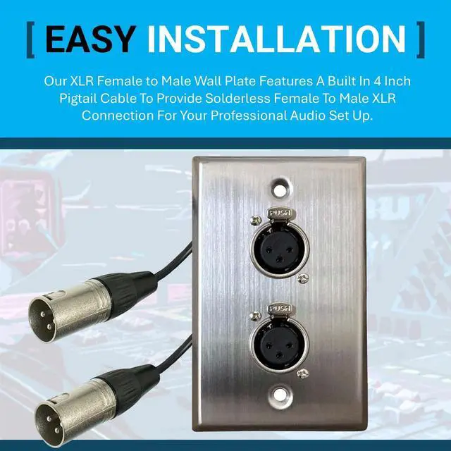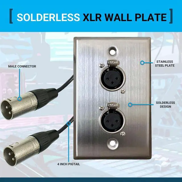 Whether you're setting up a recording studio, live sound system, or home theater, this audio wall plate has got you covered. With its sleek and professional design, the DIYTECH XLR Wall Plate Solderless not only delivers exceptional functionality but also adds a touch of sophistication to any space. Say goodbye to messy cable management and hello to a clean and organized audio setup. Don't settle for subpar connections - invest in the best with the DIYTECH XLR Wall Plate Solderless. Make your Pro Audio installation a breeze with this top-of-the-line XLR female wall plate that is truly solderless.