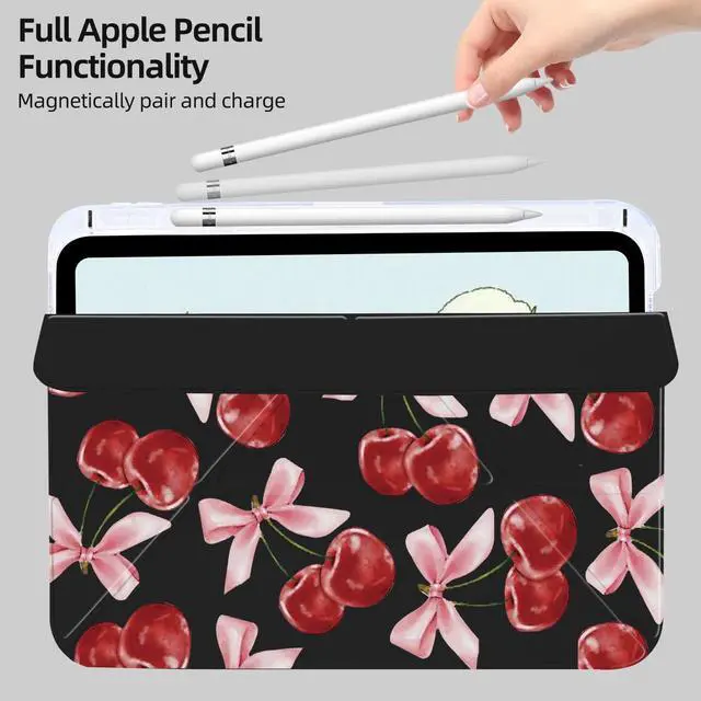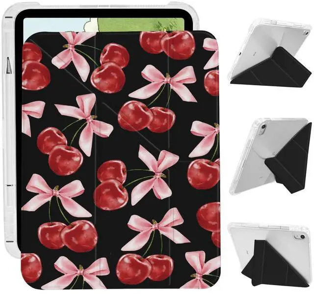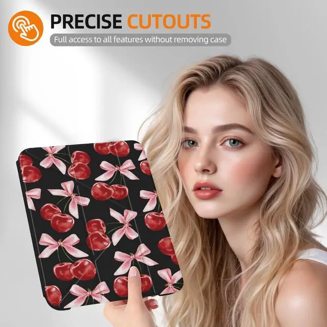 Clean: This Fashion pattern 11 " iPad (A16) case is made from two materials: artificial leather and a sturdy acrylic back shell. Stain-resistant, scratch-resistant, and fingerprint-proof. Our durable Cute girl bow cherry case provides fully protection against drops and slips. The Aesthetica waterproof cover can be easily wiped clean of stainsAutomatic sleep/wake up&built-in pen holder: This Cute girl bow cherry case for ipad can be opened without touching a button. When the case is opened, it will automatically wake up. When you close it, the pad will automatically enter sleep mode. Helps to extend battery life. This Fashion pattern IPAC case features a built-in pen holder design.