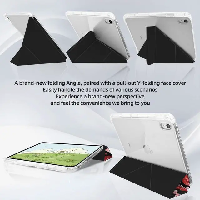 & Stable Y-Shaped Stand: This Aesthetica iPad case features a Y-shaped folding design, providing stronger support and stability, preventing tipping. The Aesthetica detachable sliding front cover allows for easy switching between landscape and portrait views. This Fashion pattern iPad case offers more than 8 folding positions to meet your needsComprehensive