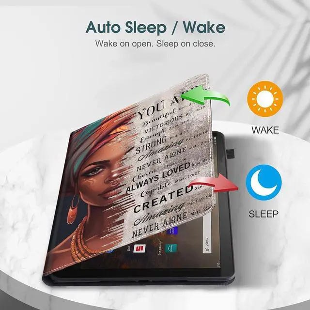 Has an elastic strap to use to hold the cover tight; The elastic loop is very convenient for a pen ^^ Built-in magnetic strip provides auto sleep / wake feature, automatically wakes or puts your Fire HD 10 Case 2019/2017 10.1 inch tablet to sleep. Built-in card slots for placing your credit card / ID card / notes and cash. and designed with a smart holder for stylus/pen (stylus NOT included). ^^ Fashion design available in a variety of bright and fun pattern - ranging from classic to vibrant. If you have any quality problems, you can contact us at any time.