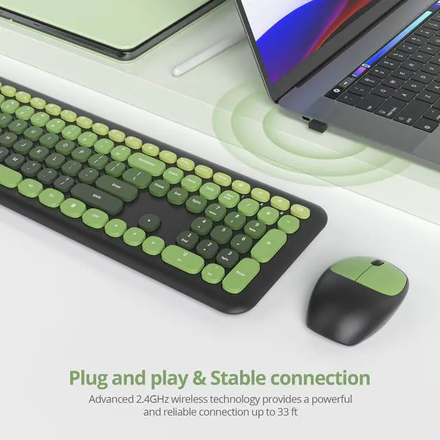 Universal Compatibility: This green keyboards and mouse set is compatible with Windows XP/Vista/7/8/10/11, ensuring reliable performance on compatible devices