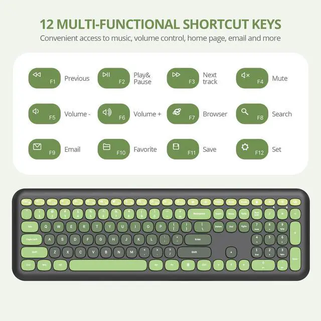 Multimedia Hotkeys: Equipped with 12 multimedia function keys, this cute colorful keyboard allows easy control over music, video playback, and web browsing, enhancing productivity and convenience ^^