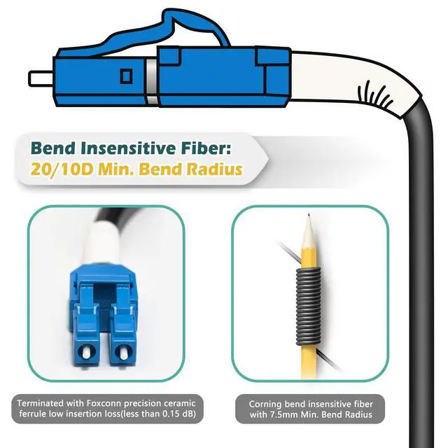 • OS2 fiber patch cable is ideal for connecting 1G/10G/25G/40G/100G/400G Ethernet connections.
