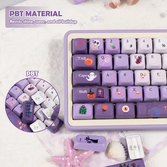 Premium PBT Material: Made from durable dye sublimation PBT material for long-lasting use, resistant to shine, wear, and oil buildup, providing a slightly textured surface for improved grip and typing comfort ^^ MOA