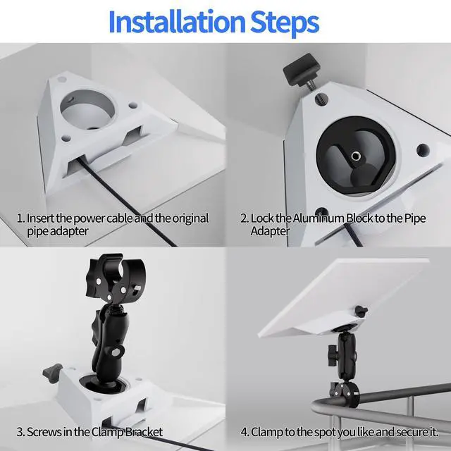 ^^ Easy to Install: This Starlink Mini RV ladder mount is easy to install with no screws or wrench needed. Simply insert the Starlink Mini Pipe adapter into the slot. Then just need to attach to any existing pole and adjust to suitable direction to finish installation.