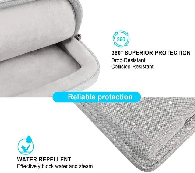 ^^ COMPREHENSIVE PROTECTION: Thick, soft, shockproof velvet inside the sleeve provides great cushioning and padding to protect your electronics from accidental bumps or scratches. Made of water-repellent canvas fabric, this macbook carrying bag will protect your valuable laptop from water splash or rain. The macbook pro case can offer 360 optimal protection for your laptop. You don't need to worry about your notebook getting damaged on the traveling.