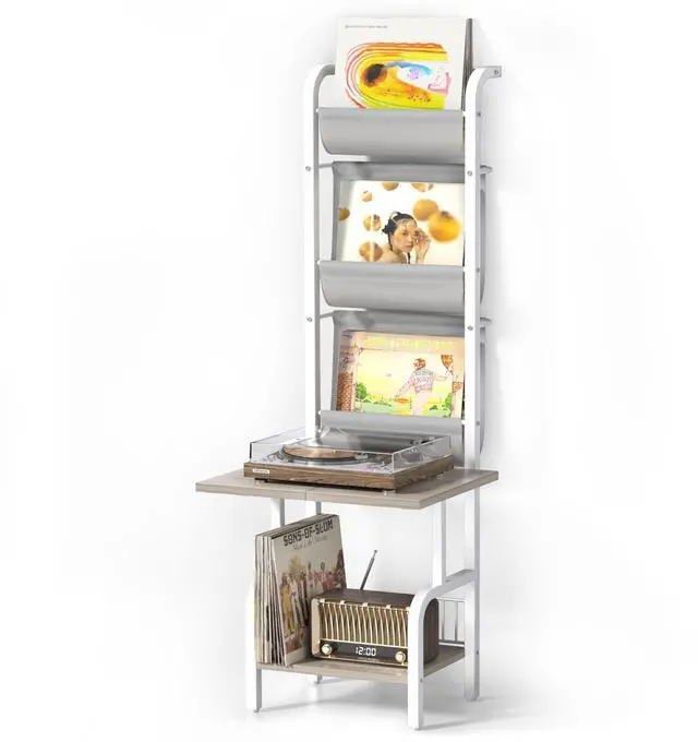 Extra Large CountertopSpecially enlarged the countertop for the record player, the record player stand with vinyl storage can hold almost any size of record players. You can jam out to Harry Styles full blast without worry of your turntable sliding off. ^^ Vertical Design, No