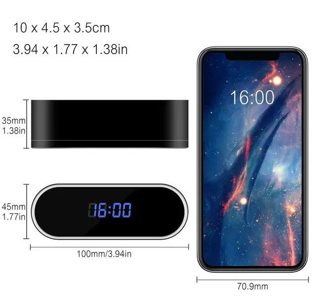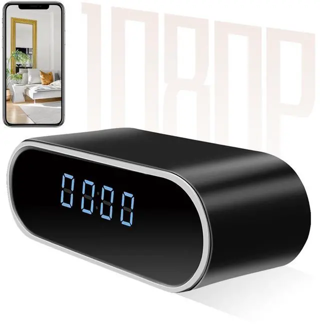 [WiFi Hidden Camera Clock] This spy camera looks like an ordinary clock that can tell you the time. The lens of cam is hidden under the glossy screen. No audio ^^ [Motion Detection] You can set up motion detection and alarm notification in app. Once the security camera detect movement it will automatically capture 3 pictures and save in app, and alert notifications will be sent to your phone immediately. No audio ^^ [Night Vision & HD 1080P] High quality 19201080P resolution shows you all the details and clear images. Reaching every important corner of your room! No audio ^^ Latest version