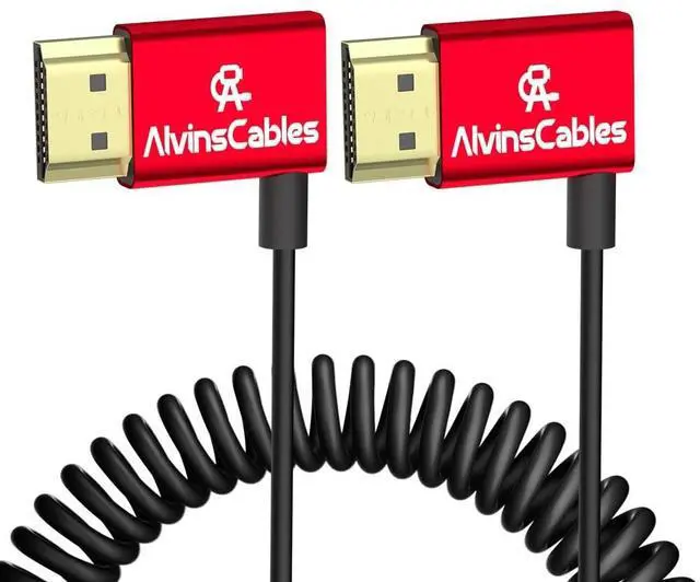 Alvin's Cables 8K HDMI Cable 2.1 48Gbps High Speed 2.4mm Ultra-Thin HDMI 8K@60Hz 4K@120Hz for Sony A7 A9, BMPCC, for Canon C70, for Atomos Ninja, for SmallHD, Left to Left Angle Coiled Cable