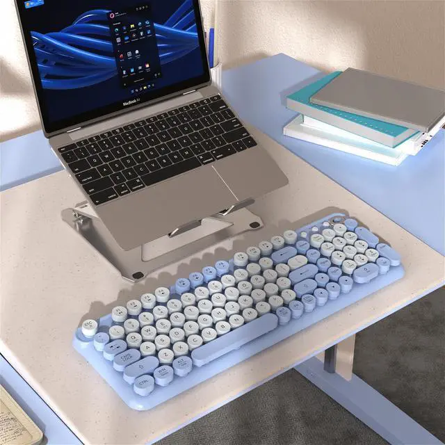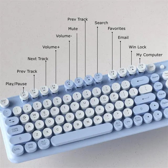 Elevate Your Workspace: Step into a perfect blend of nostalgia and modern sophistication with our typewriter-inspired Bluetooth and USB dual-mode keyboard. Featuring a striking dual-tone color block design, this keyboard adds a touch of vintage charm to any desk, effortlessly transforming your workspace into a stylish and productive retro haven.