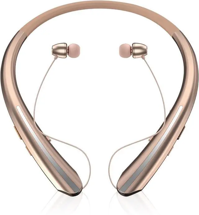 JNXIKOU Bluetooth Headphones Wireless Neckband Bluetooth Earphones Auto Retractable Earbuds with 24H Playtime,Sports Waterproof Earphone,Noise Cancelling with Mic for Running Workout,Gold