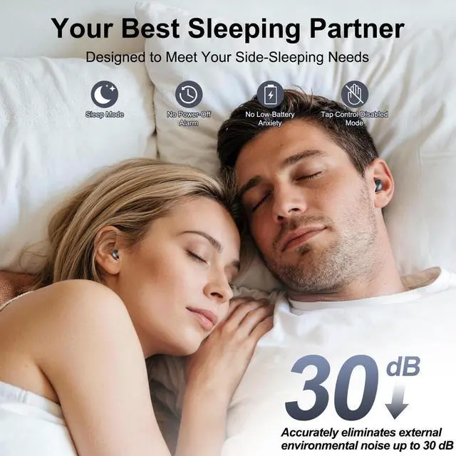 Side Sleepers: Each bluetooth sleep earbuds weighs only about 3 grams, offering a feather-light feel with soft, skin-friendly detachable silicone tips that naturally fit the ears contour. Even when sleeping on your side or turning over, they stay secure without pressure or discomfort. The stable yet non-intrusive design makes the side sleepers earbuds ideal for light sleepers, insomnia sufferers, shift workers, and frequent travellers who need quality rest in different environments, allowing both body and mind to fully relax throughout the night. ^^ Bluetooth 6.0 Performance Compact, Stable, and