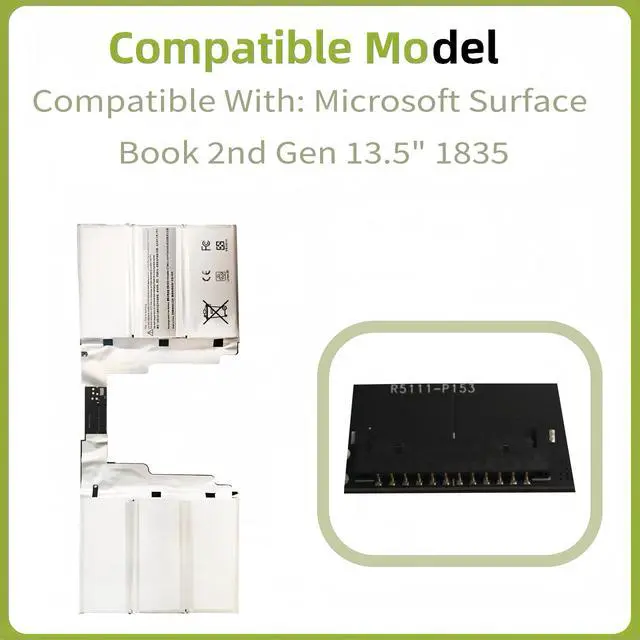 Battery Parameters: 5042 mAh / 57.3W h, 13.2 V3. Compatible withCompatible with Microsoft Surface Book 2nd Gen 13.5" 18354.