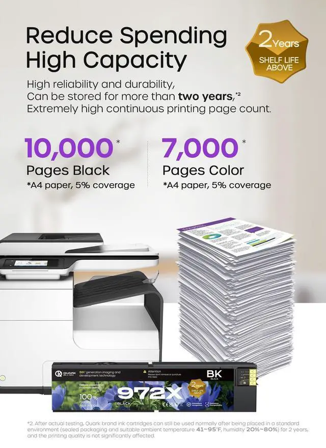 ^^ Trusted Premium Quality Our Quark 972A/972X ink cartridges can deliver vibrant colours and crisp text, meeting all your office and home printing needs. ^^ TipsIf there is any problem with the purchased product or you bought the wrong one, please contact us and we will help you solve it, 24/7 technical support and customer service.