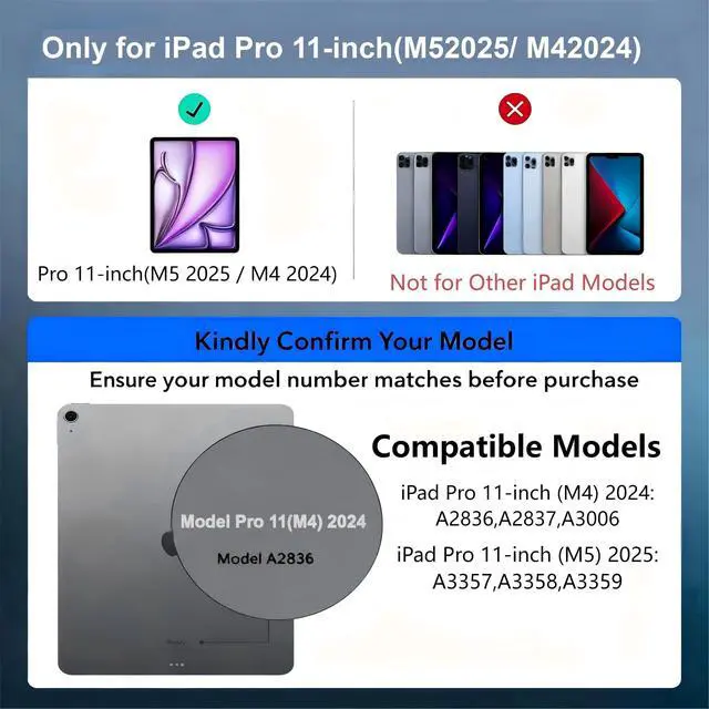 Compatibility: This keyboard case is only compatible with the iPad Pro 11-inch (M4) 2024 (A2836, A2837, A3006) and is not compatible with other iPad models ^^