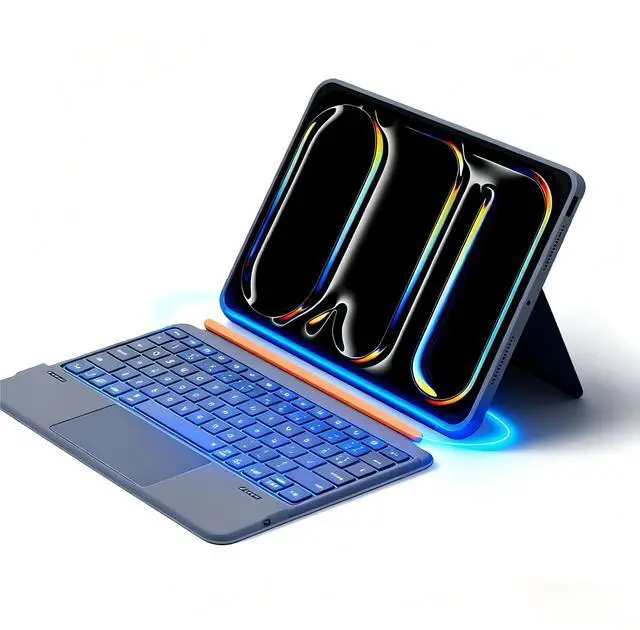 Slim & Lag-Free Bluetooth: Boasts an ultra-thin 0.25 -inch design; the foldable stand adjusts from 0 to 170 to meet different angle needs. Bluetooth 5.3 enables instant, lag-free pairing and stable connection, making it easy to switch to work mode during commutes or in cafes. ^^ Silent 7 RGB Backlit Keys & Long Battery: Scissor-switch keys deliver comfortable, responsive typing with quiet 1mm key travel (perfect for libraries/offices). It comes with 7 RGB backlight colors, ensuring comfort and boosting productivity even in any dimly lit area. USB-C charging takes just 2 hours, supporting up to 100 hours of use. ^^ Precise Touchpad & iPad
